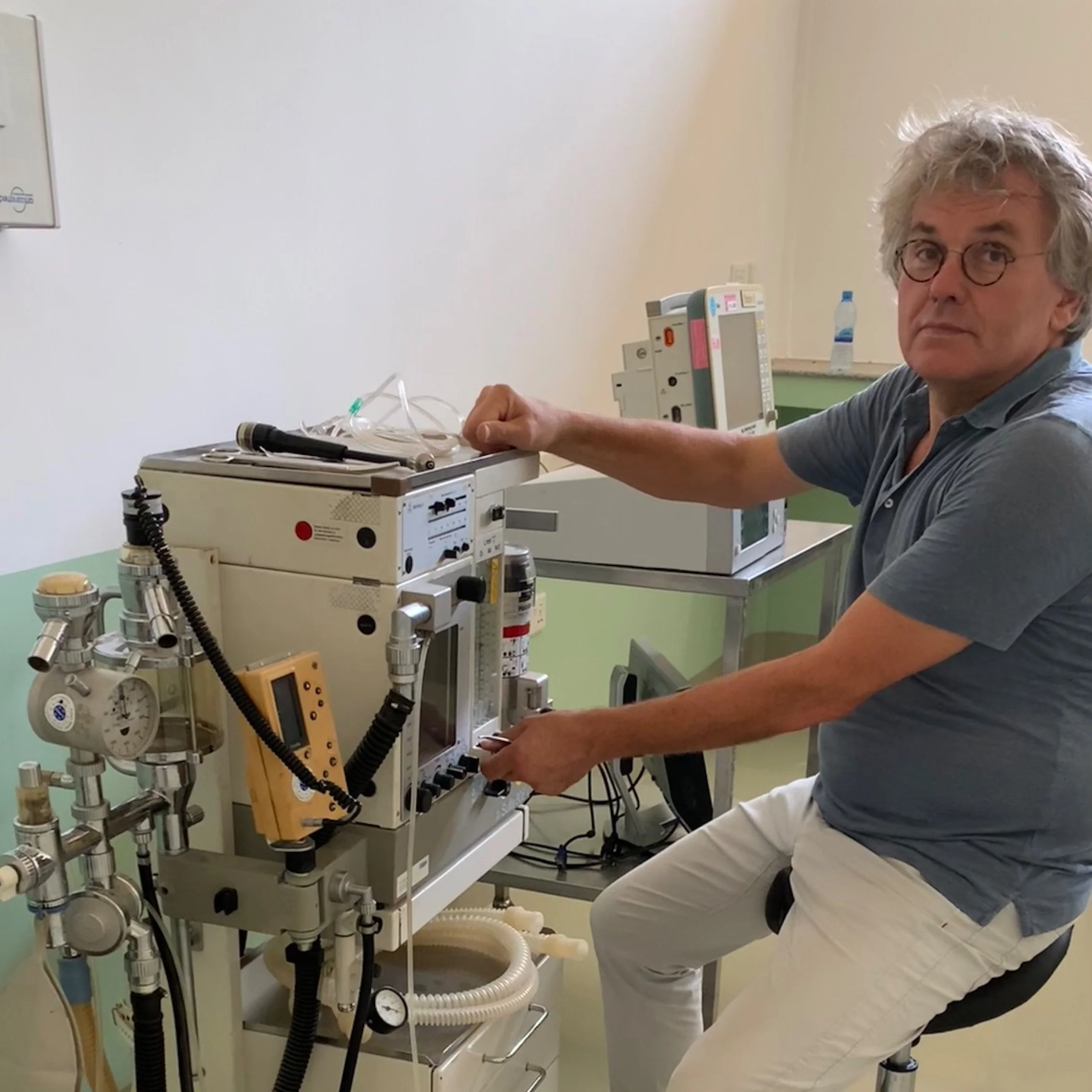 Michiel is ook bezig geweest met het uitzoeken en opruimen van materialen maar dan voor de anesthesie. Ook daar moet grondig opgeruimd worden. Daarnaast moet de nieuwe anesthesieapparatuur compleet en werkend gemaakt worden. De gas-analyser ,met met veel moeite Tanzania in gekregen, werkt goed.